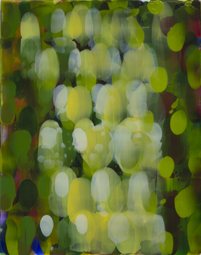 Based on the existing situation on the canvas, I make a move when I choose a new colour and apply spoonsful of paint and spread it with a squeegee.