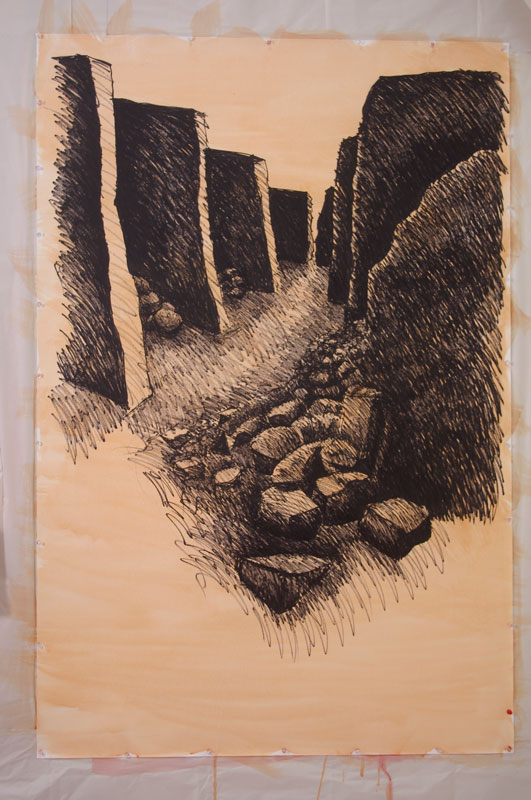 Mars 3, 2014 1.4 x 1m Black Posca & wash Fabriano Academia |