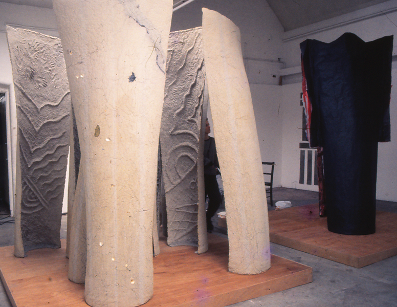 right: Warrior Goddess 1987 10 torsos Cast paper and Monoprints on Tissue 9ftx 5ft