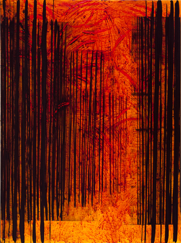 Paintings are generally sized 1 x 1.4 metres, acrylic paint on canvas.